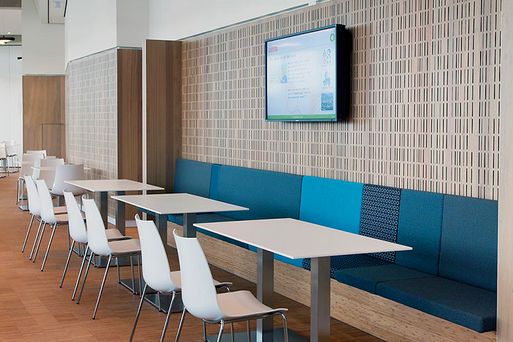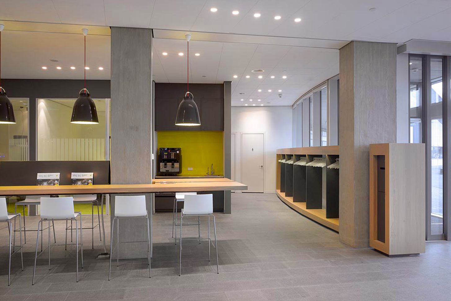 In dit bijzondere kantoorgebouw op de Maasvlakte is het interieur op een dynamische wijze onderdeel van de omgeving. Het ontvangstgebied, de lockerwanden, het bedrijfsrestaurant en diverse service-elementen op de verdiepingen zijn gerealiseerd naar ontwerp van GroupA.